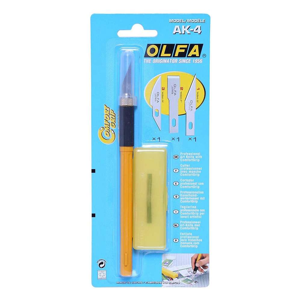 The Olfa OL-AK-4 Professional Utility Cutter comes with 3 blades, making it an essential tool for anyone who needs a high-performance cutter for professional or heavy-duty cutting tasks. Its durable build and sharp blades make it perfect for precise cuts on various materials.