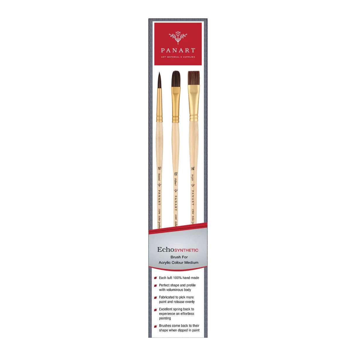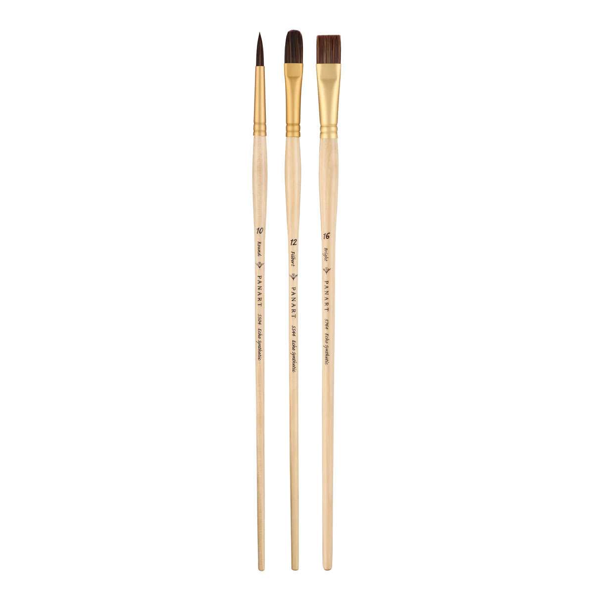 Set of 3 Brushes: Round 10, Bright 16, Filbert 12.