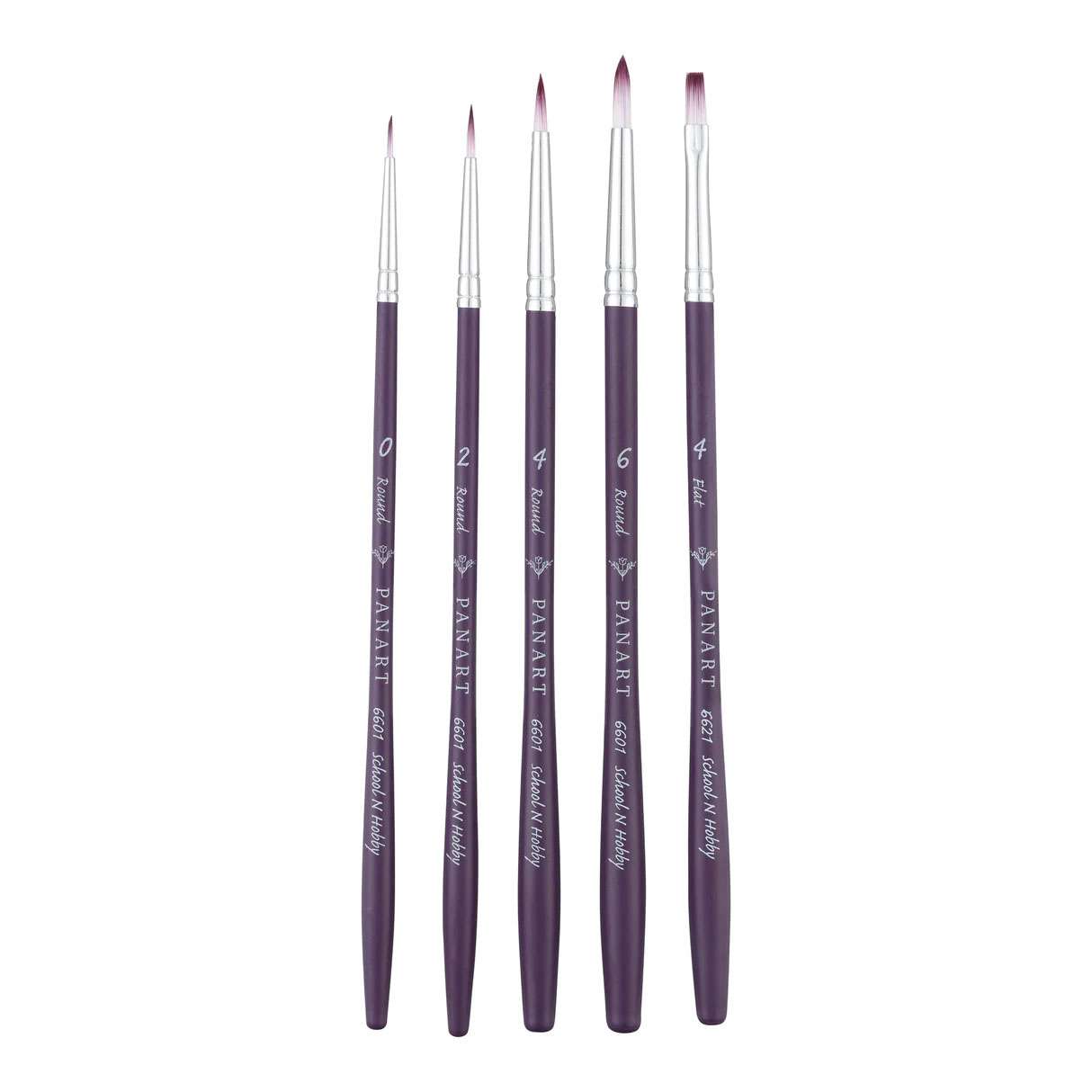 Set of 5 Brushes: Round 0, 2, 4, 6; Flat 4.