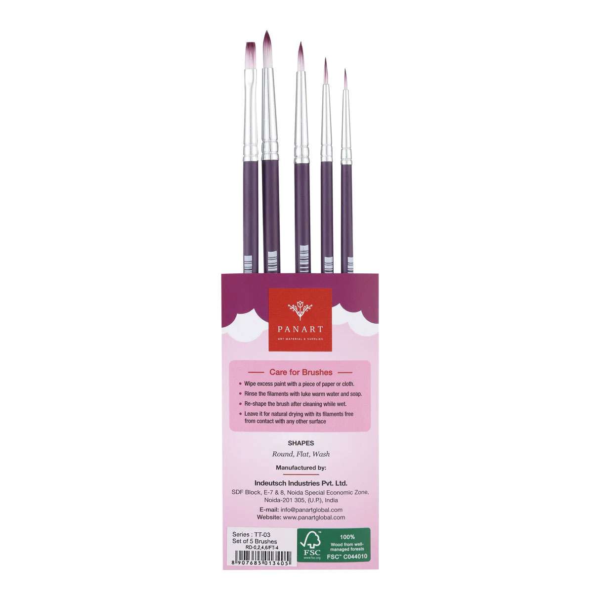 Panart TT-03 Brush Set offers a perfect balance between precision and coverage. The dual-tone synthetic bristles provide strength and smoothness for classroom and studio work.