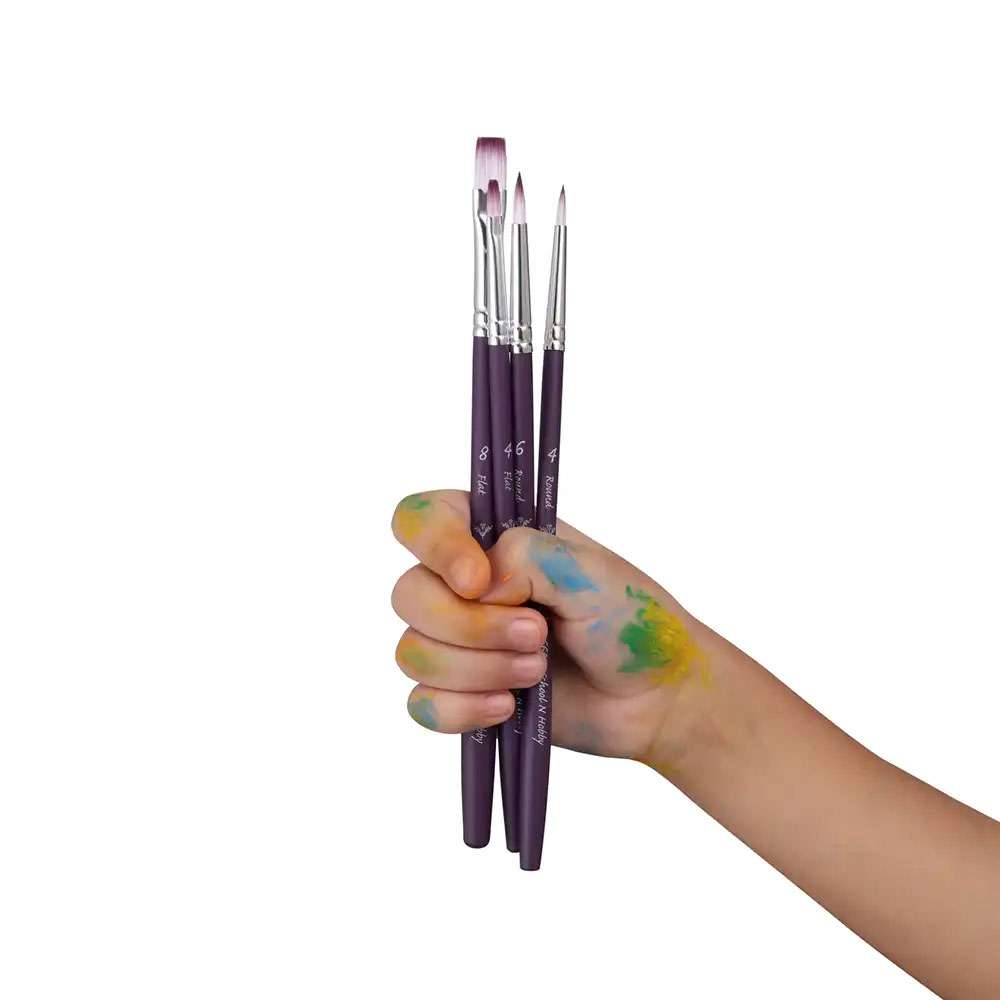 Set of 4 Brushes: Round 4, 6; Flat 4, 8.