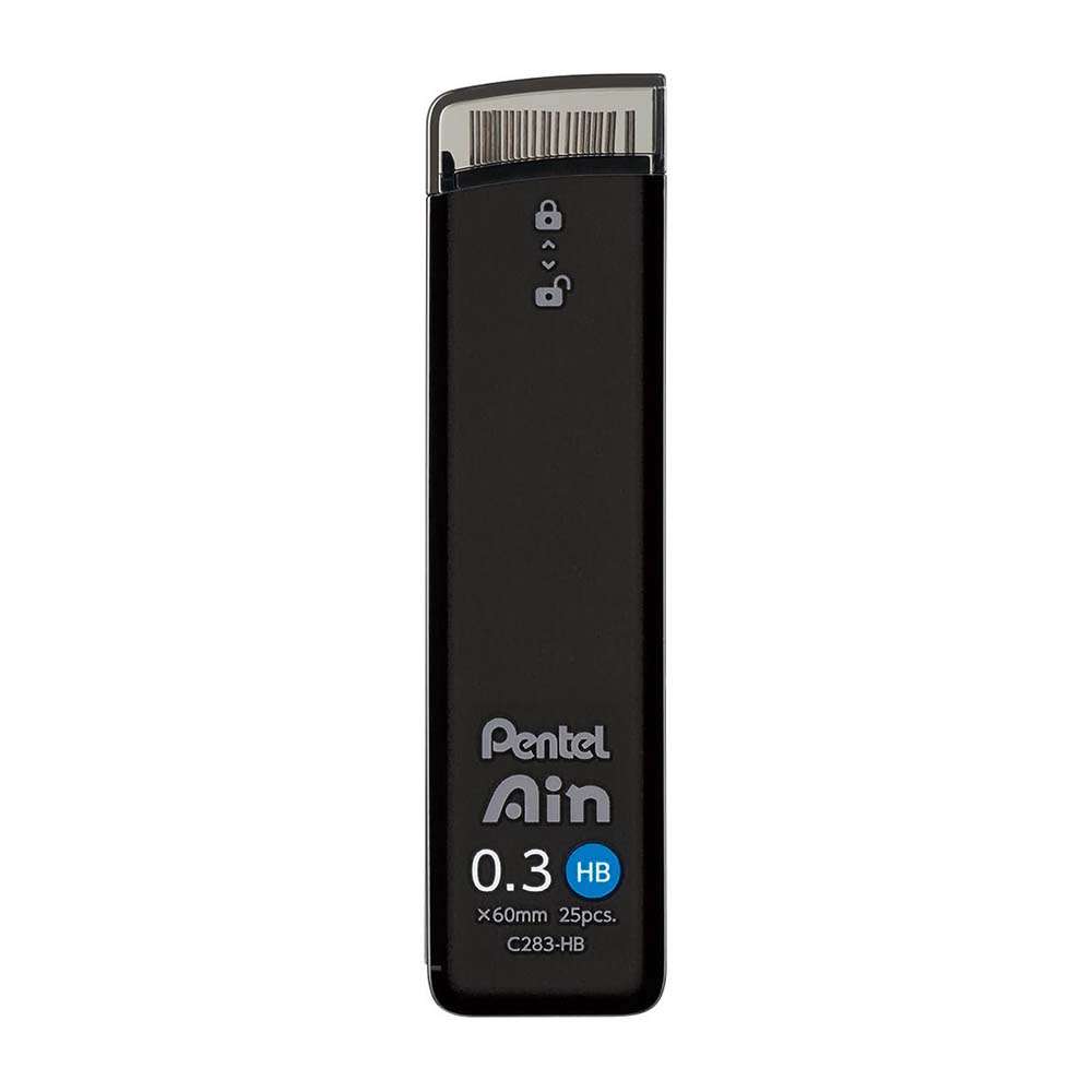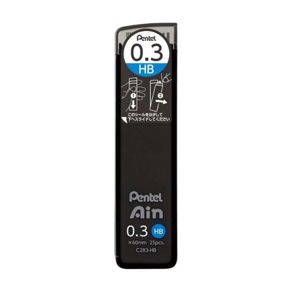 For micro-writing on tight grids, Ain-C28 0.3 mm HB (model PE-C283-HBO-1) writes smoothly and erases cleanly. The slim dispenser makes refilling quick for technical notes, planners, and tidy exam work.