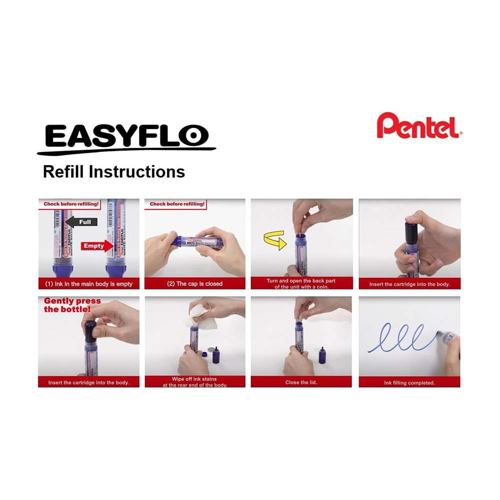 Pentel MWR1 black (model PE-MWR1-A-1) restores deep, legible strokes to Easyflo markers. Ideal for heavy daily use, it supports sustainable replenishment without replacing the full marker.