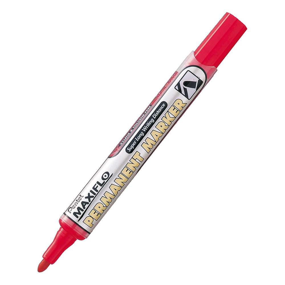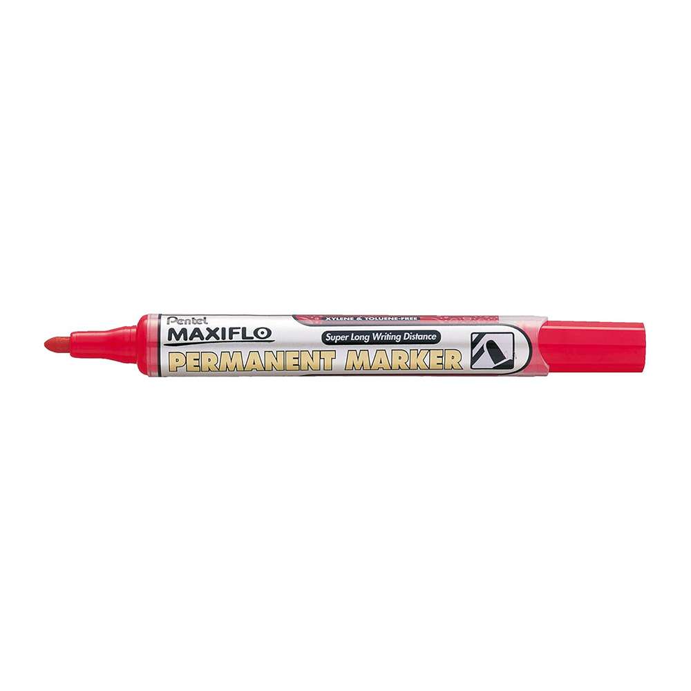 This Maxiflo bullet (model PE-NLF50-B-1) pairs a liquid-ink reservoir with a push-button “revive” system for steady lines. The low-odour, quick-dry red ink writes on most surfaces, ideal for fast labelling and clear warehouse or office markings.