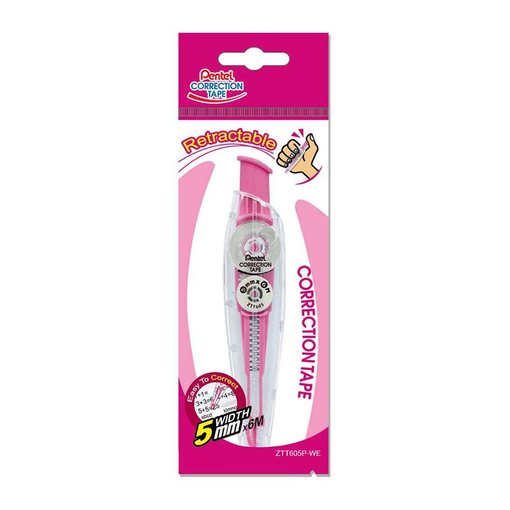 This ZTT605P retractable tape delivers crisp, dry coverage with immediate write-over. The retractable tip protects the mechanism and keeps desks tidy. Its slim 5 mm width matches narrow ruled paper, and the compact housing rides easily in pencil pouches and planners.