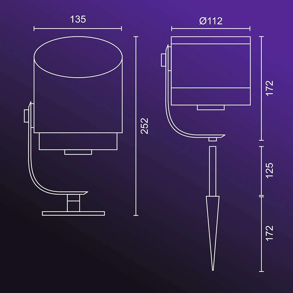 The Philips Hue Lily Outdoor Spotlight Extension (8W, 24V) is a versatile addition to your existing Hue outdoor lighting setup, designed to enhance your garden or patio with dynamic, customizable lighting. This extension spotlight requires a compatible base unit and a Philips Hue Bridge for full functionality. This spotlight extension allows you to highlight specific areas in your outdoor space, such as pathways, garden features, or architectural details, creating a personalized ambiance for any occasion. Its durable design ensures reliable performance in various weather conditions.