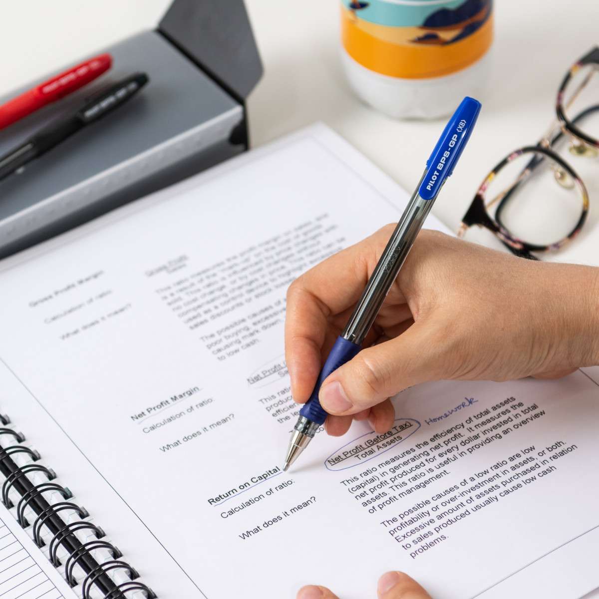 Medium 1.0 mm lines: clear blue strokes read easily across worksheets and reports.