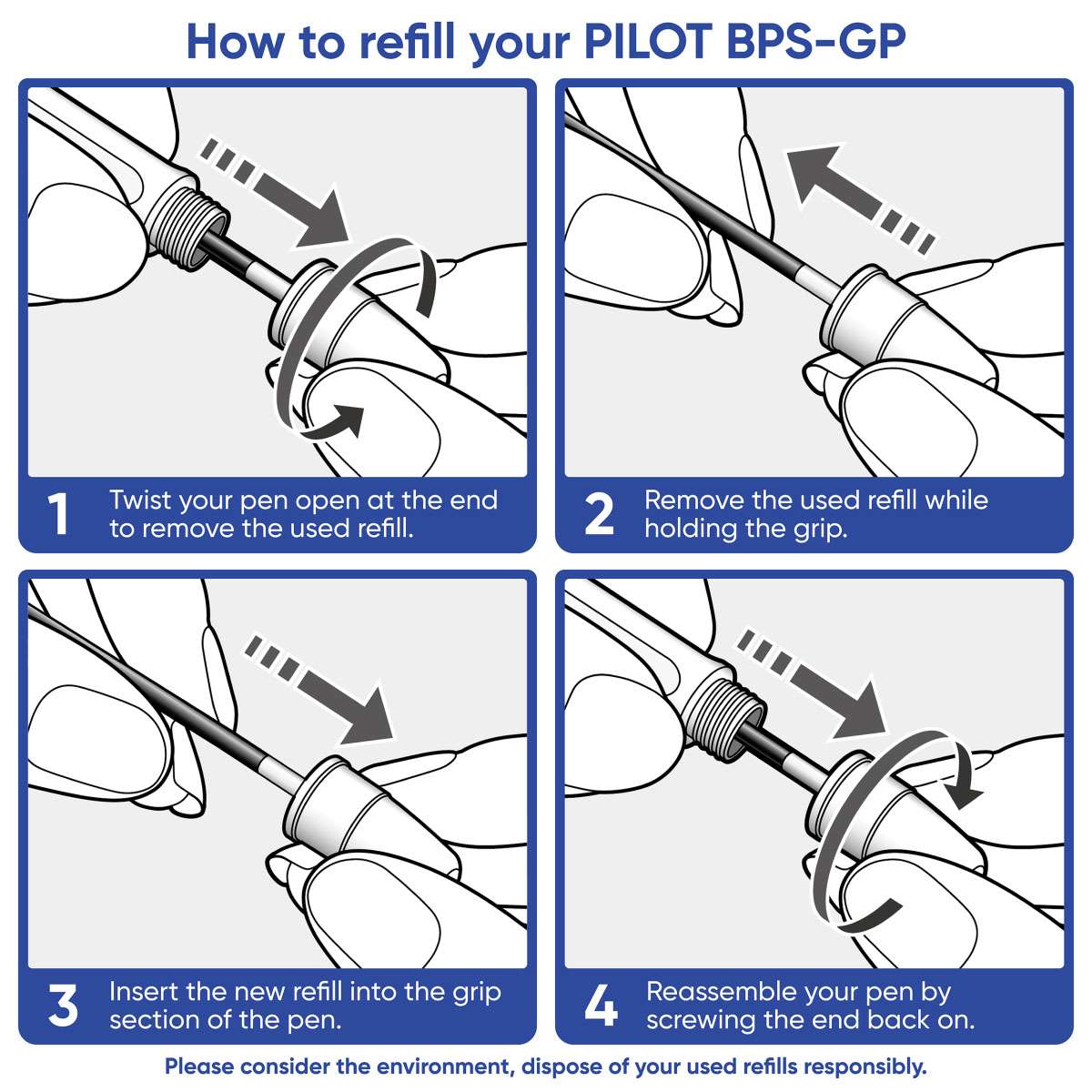 The Pilot BPS-GP (model BPS-GP-M-L-1) is a classic everyday ballpoint with a comfy rubber grip and smooth oil-based ink. Its medium 1.0 mm tip lays bold, readable blue lines for notes, forms, and quick signatures at school or work.