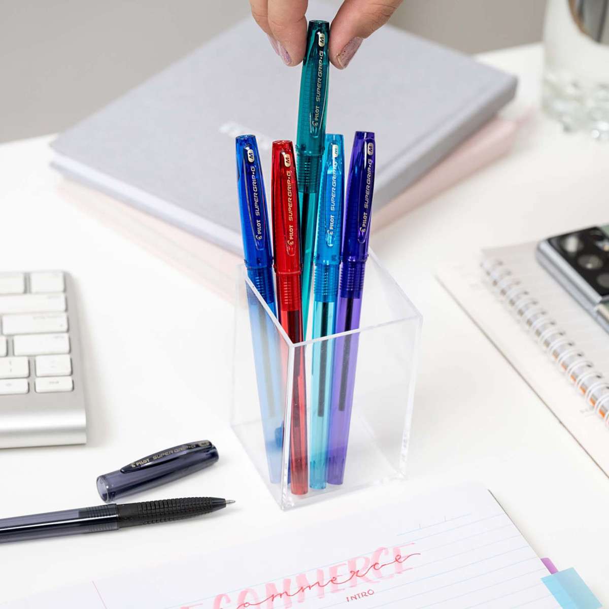 Supergrip G medium (model BPS-GG-M-L-1) blends soft-writing oil ink with a cushioned, grid-pattern grip for comfortable daily notes. The robust stainless-steel tip and carbide ball provide durability and clear blue lines at work, at school, or on the go.