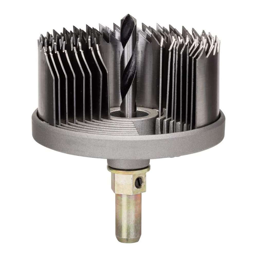 Hole saws are used to cut large diameter holes (e.g., for pipes, electrical conduit, or recessed lighting) in materials like wood, plasterboard, plastic, and thin metals.