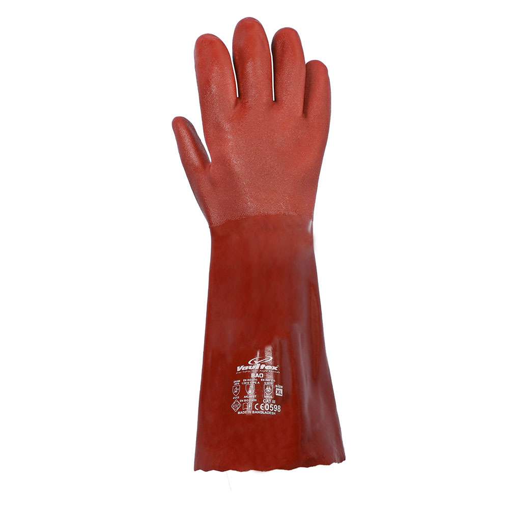 Vaultex BAO Double Dip PVC Chemical gloves, 40Cm Length, Red, Size M, 12 Pair/Pack