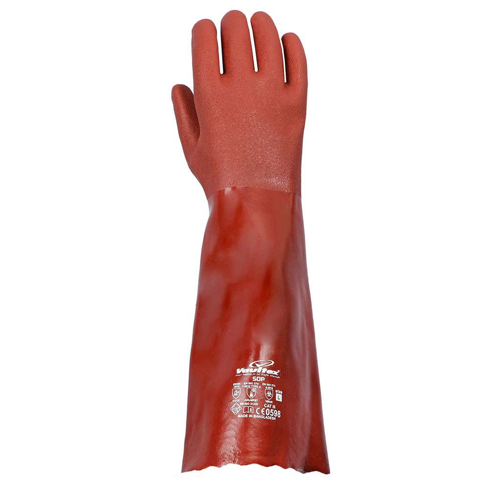 Vaultex SOP Double Dip PVC Chemical gloves, 45Cm Length, Red, Size M, 12 Pair/Pack