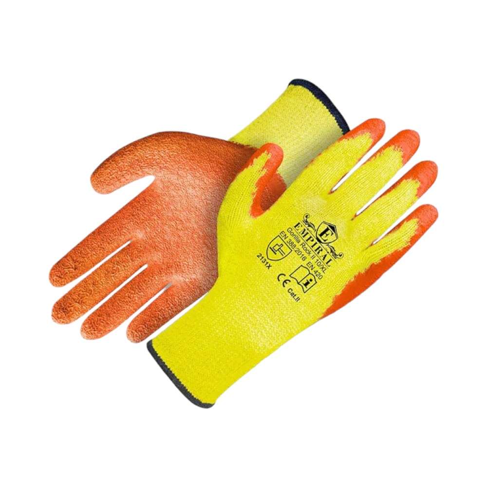 Empiral Gorilla Rock II SL Gloves, Latex Palm Coating, Large Size, 1 Pair, Used for Heavy Handling & High Friction - Yellow/Orange