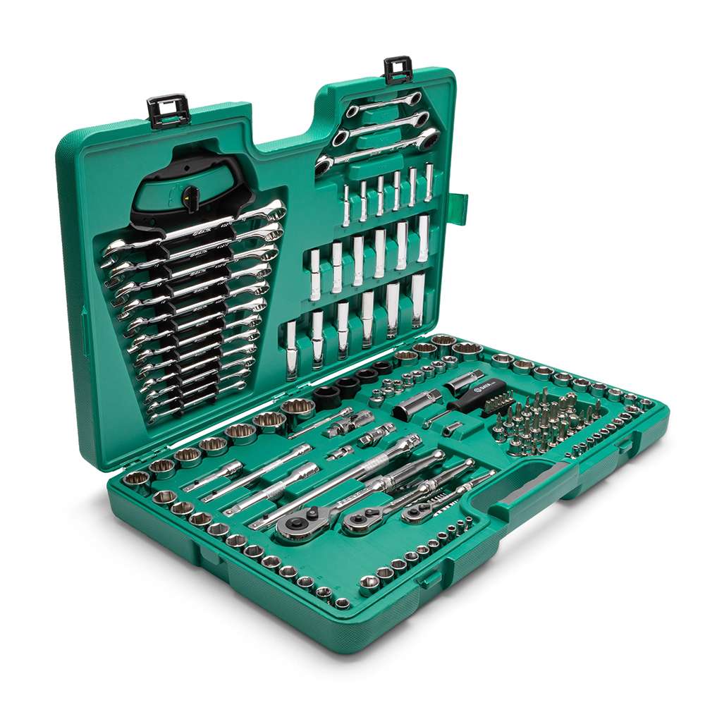 150-Piece Comprehensive Set: This set includes a vast array of 1/4”, 3/8”, and 1/2” drive sockets, both in 6 and 12-point configurations, covering Metric and SAE measurements. It’s designed to tackle a wide variety of tasks, making it perfect for mechanics, technicians, and DIY enthusiasts alike.