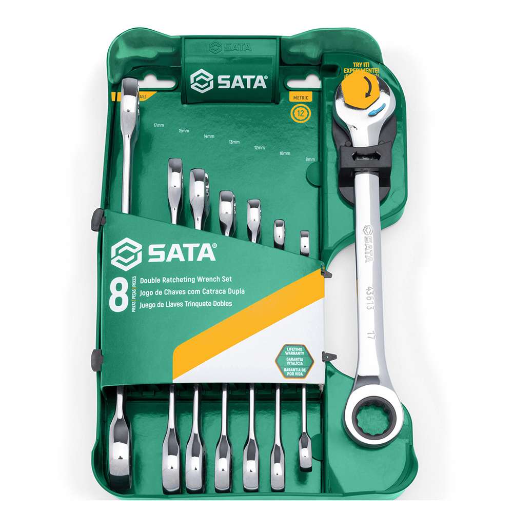 Double Ratcheting Heads: Each wrench features double-sided heads with both standard open-end and ratcheting functions, allowing for quick and efficient tightening or loosening without needing to reposition the wrench.