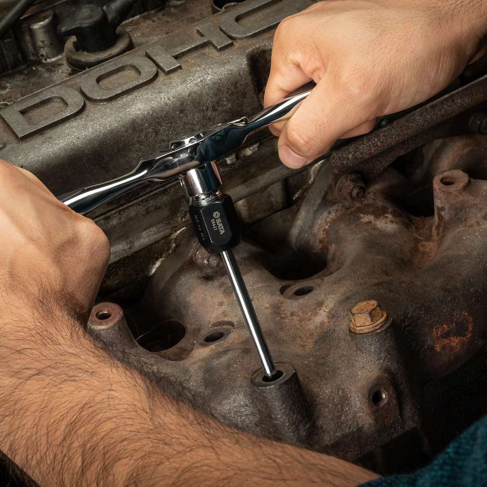 • Flush mounted reversing lever allows user to change direction with one hand without removing the wrench