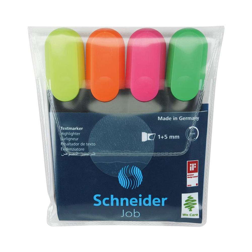 Schneider provides Job 150 highlighters for office, school, and home use. Model SCH02511500 combines durable chisel tips with bright, even ink for tidy pages and quick scanning. Ideal for textbooks, planners, and forms, it supports daily color-coding, revising, and organizing with reliable coverage and long-lasting value.