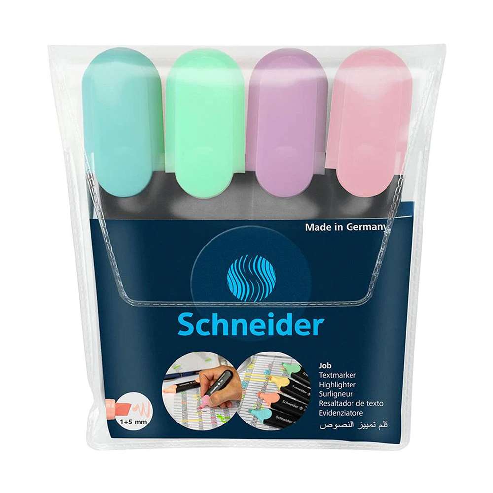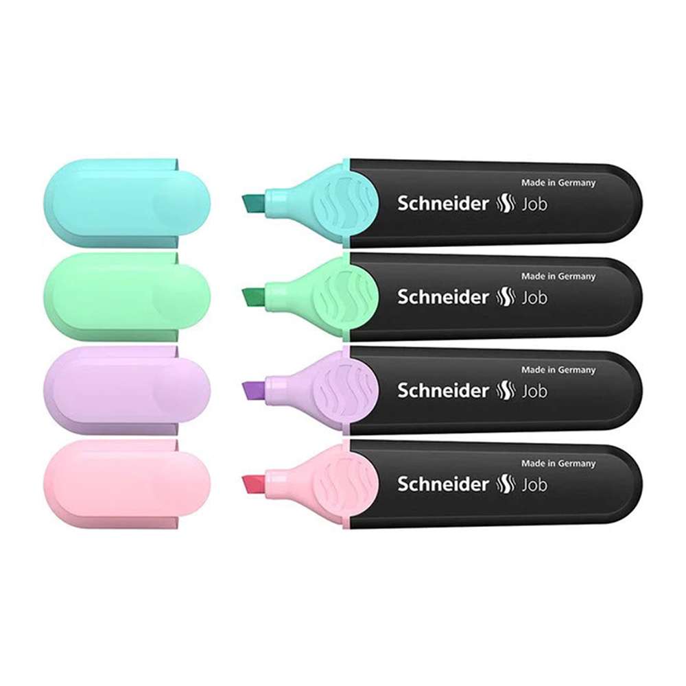 Schneider provides Job Pastel sets for office, school, and home. Model SCH0725115098 features soft turquoise, mint, lavender, and light pink with smooth ink flow and precise chisel control. Ideal for planners and study cards, it supports calm color-coding and readable notes without harsh contrast or glare.