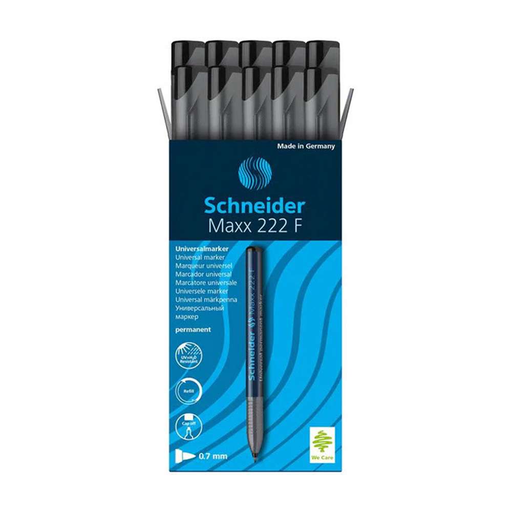 Schneider provides fine-line permanent marking for office, school, and home. Model SCH0022112201 (Maxx 222 F, 0.7 mm) delivers slimmer, precise lines on transparencies and plastic. It supports detailed labeling, diagrams, and neat annotations with quick-dry, water-resistant, low-odor ink.