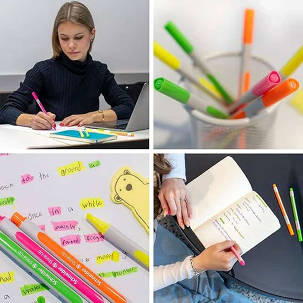 Schneider offers Shine Up highlighting for home, school, and office needs. Model SCH1002112009 provides luminous pink marks, dependable ink flow, and a durable chisel tip. Excellent for notes and printouts, it supports daily prioritizing and quick reviews with clean coverage and consistent, easy-to-read results.