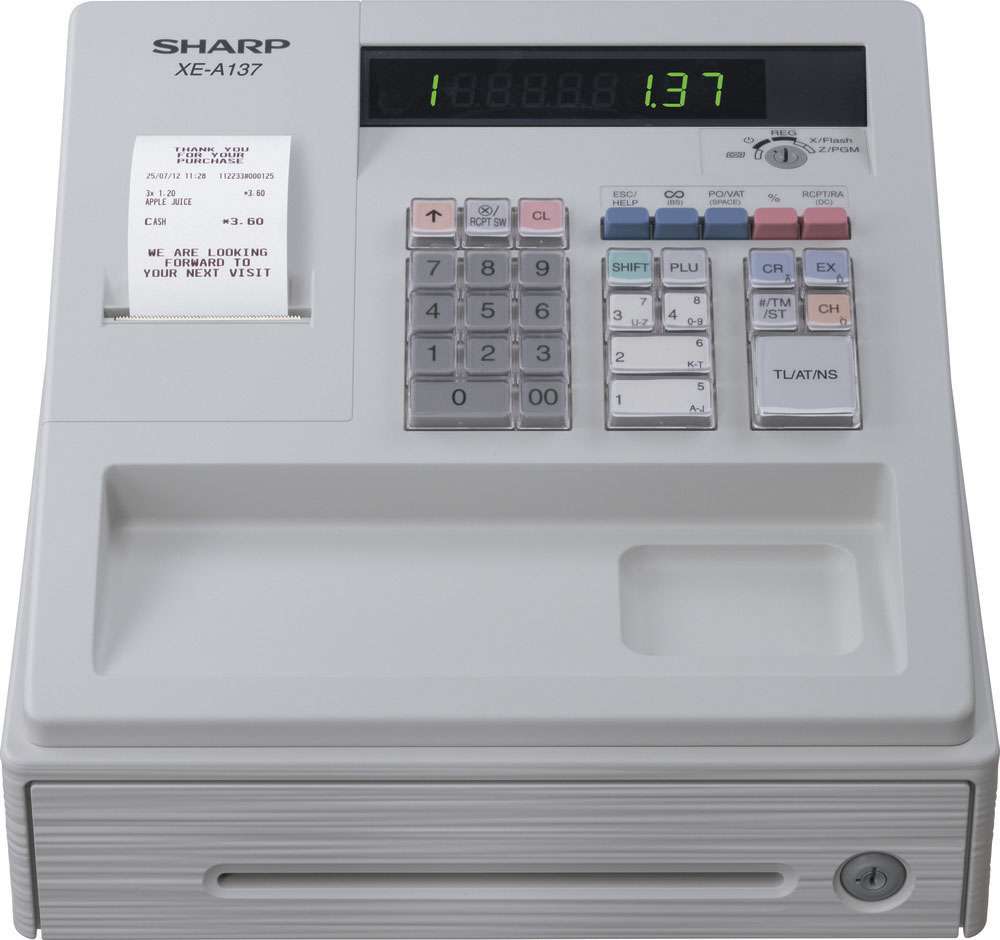 Sharp provides the XE-A137-WH Electronic Cash Register for small retail and service businesses that require high efficiency and ease of use. The focus is on advanced features, compact design, and clear readability, making it perfect for fast-paced environments.