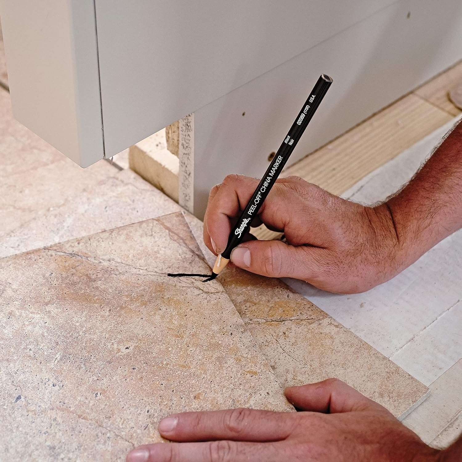 Sharpie peel-off china markers (model SP-S0305101) write boldly on porous and non-porous surfaces like glass, metal, and ceramics. Pull the string and peel the paper for a fresh point—ideal for kitchens, warehouses, studios, and temporary, moisture-resistant marks.