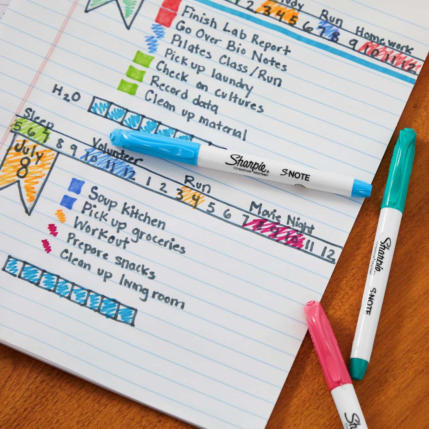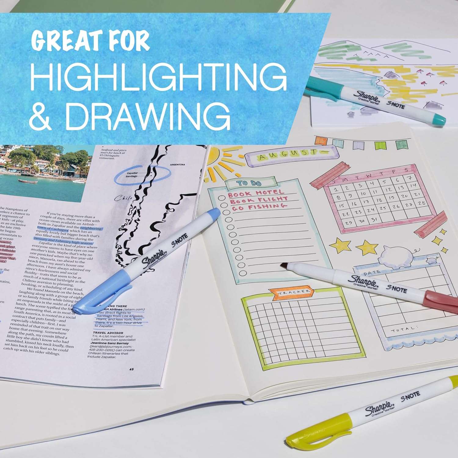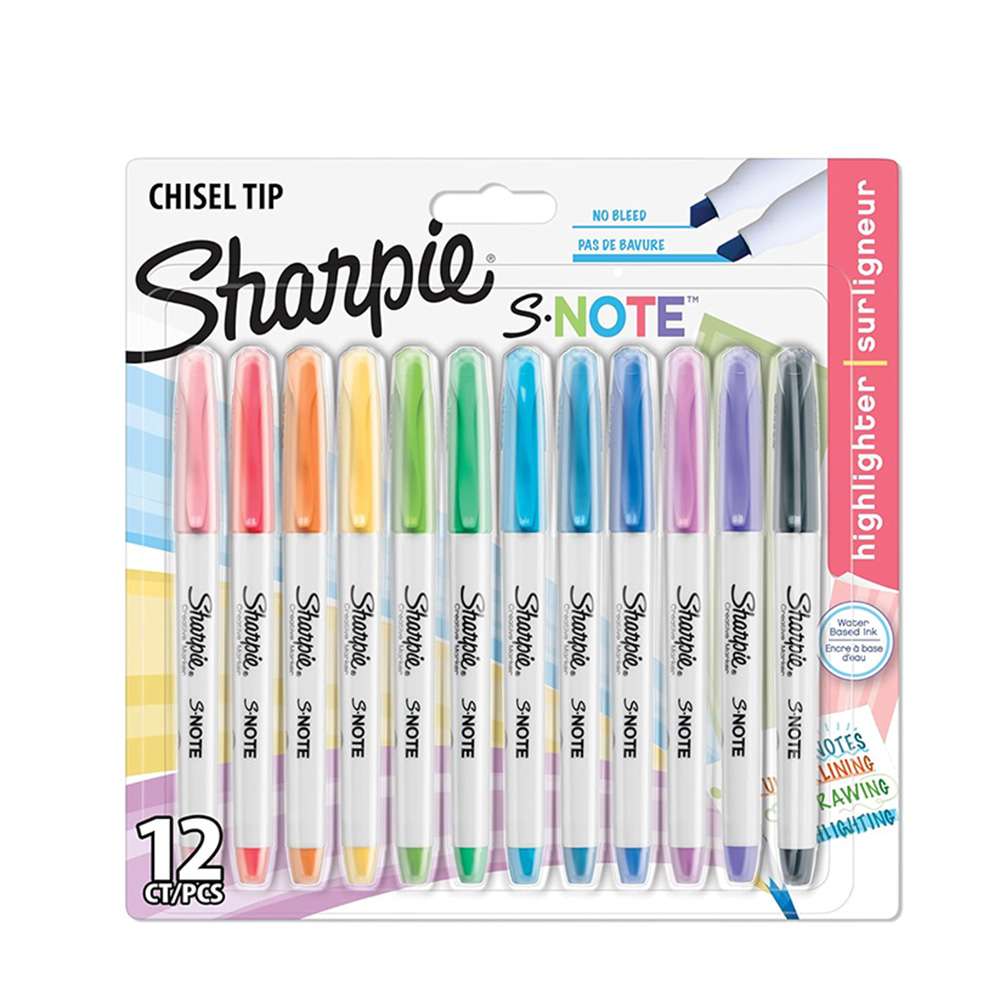 Sharpie S-Note (model SP-2138233) blends highlighter and marker utility. The chisel tip switches from broad highlighting to precise underlining and note-taking. Quick-dry, smear-resistant ink works for colour-coding planners, annotating printouts, and decorating handmade cards.
