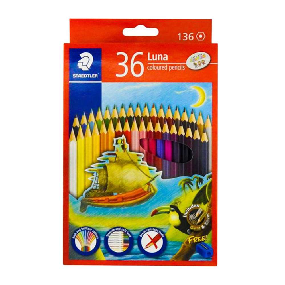 The Staedtler Luna Colouring Pencils set includes 36 rich and vivid shades for artistic expression. Designed for both kids and adults, these pre-sharpened pencils offer smooth Colouring and strong leads. Perfect for school, hobby, or professional art, they deliver quality in every stroke.