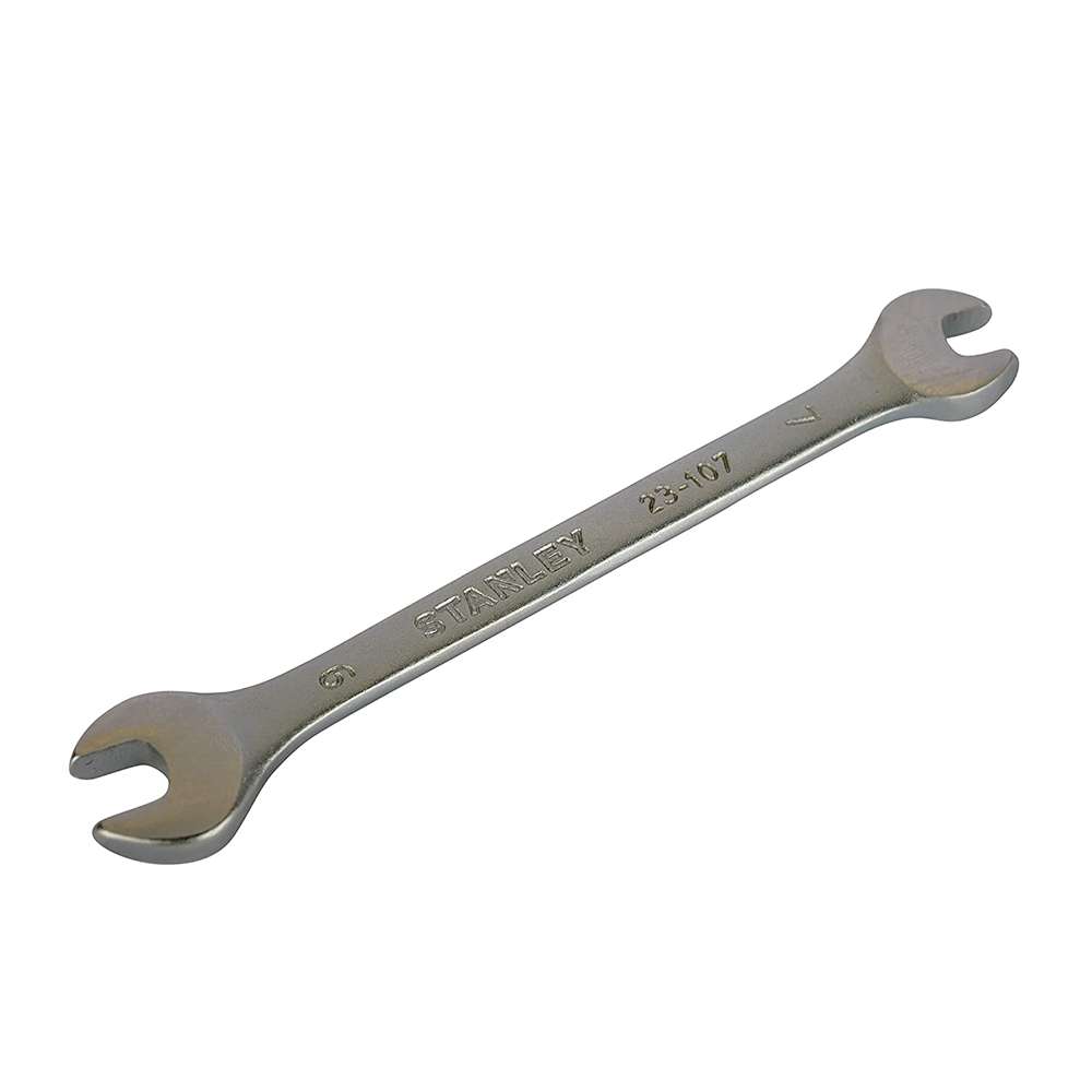 Stanley double open end wrenches like the 7 x 9mm STMT23107 give two metric sizes in one tool. The focus is on chrome vanadium steel construction, slim offset open ends and clear size stamping, helping users tighten and loosen small to medium nuts and bolts efficiently in automotive and general maintenance work every day.