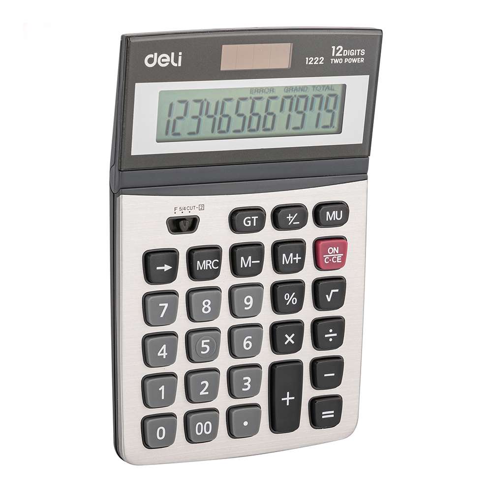 Deli 12-Digit Dual Power Desktop Calculator, Angled 2-Line High Quality Lcd Display Screen - Grey