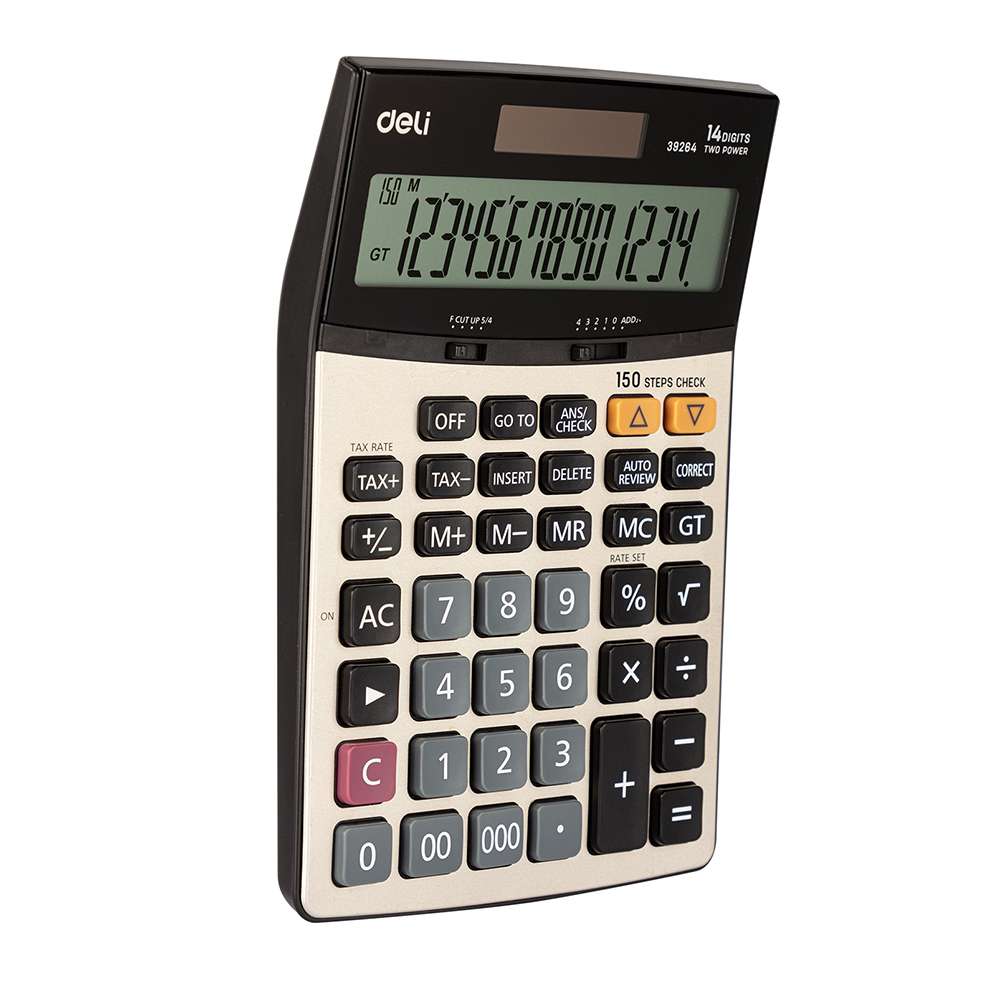 Deli 14-Digit Desktop Calculator, Extra-Wide Lcd Display, Steps Check, Memory Function - Brown