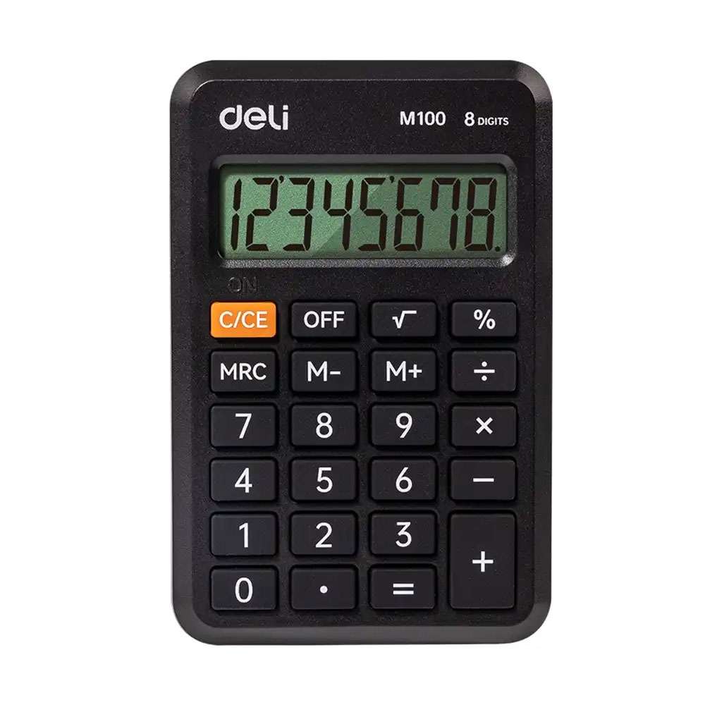 Deli 8-Digit Dual Power Basic Calculator, Pocket Size, Standard Function, Perfect For Office & Classroom Use - Black