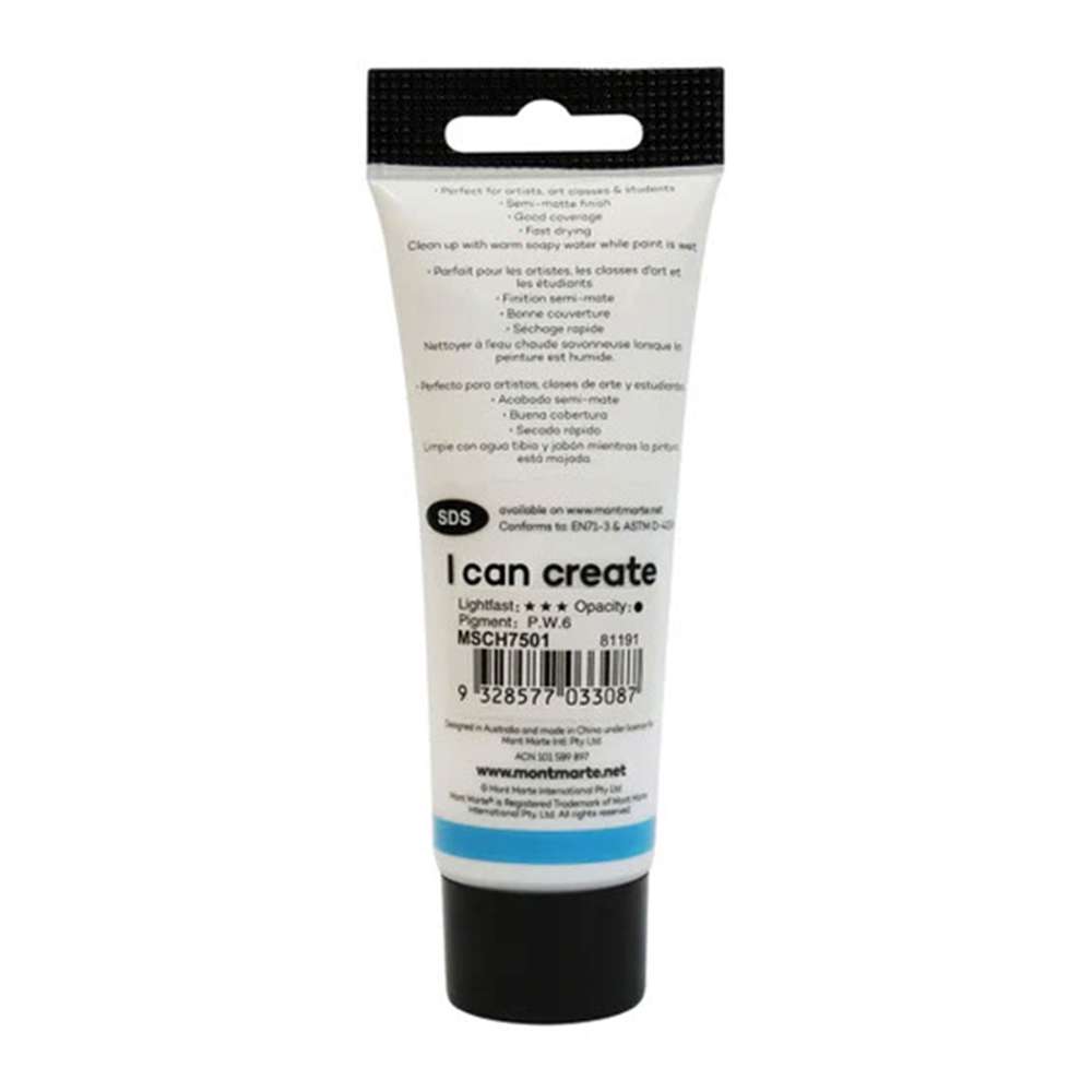 Mont Marte Titanium White Acrylic 75ml (MSCH7501) offers brilliant opacity and smooth consistency, ideal for highlights, mixing, and base layering. Perfect for both beginners and professionals.