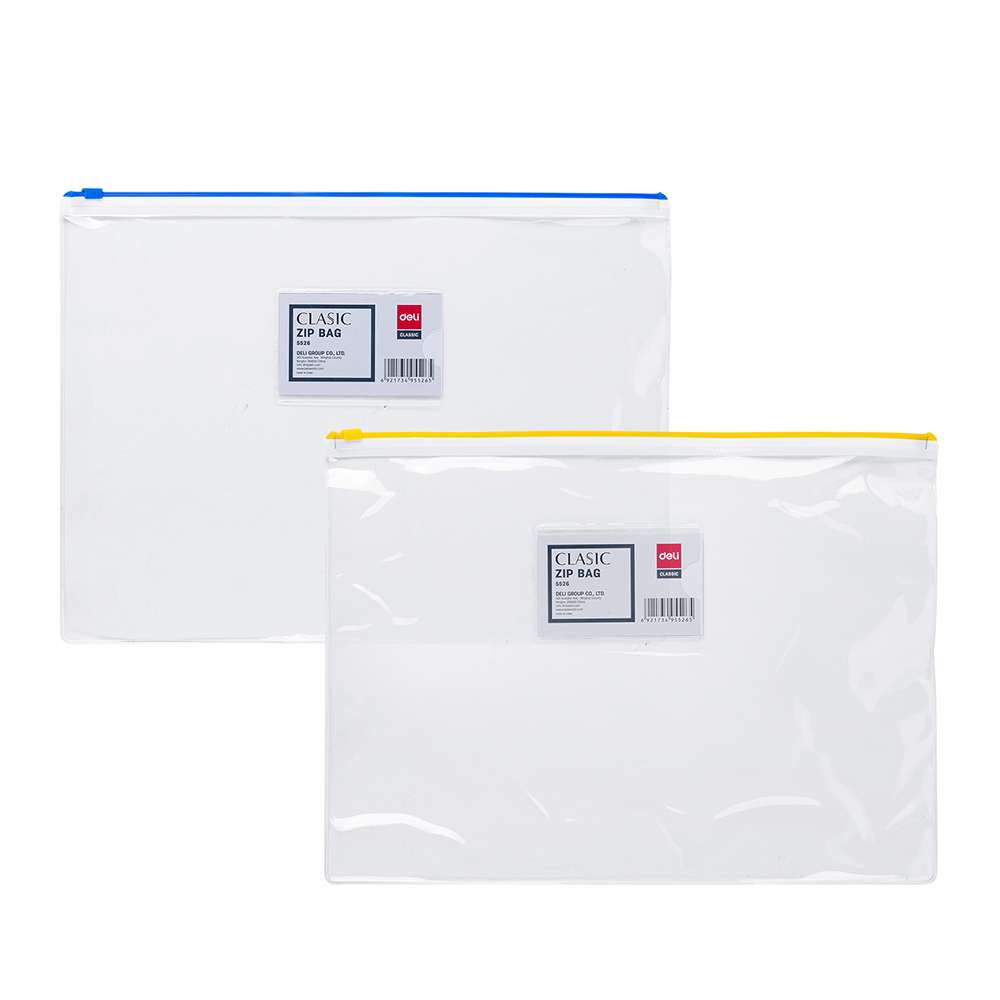 Deli Zip Bag, A4, Pvc Material, Durable, Protect & Keep Organised Your Document, School & Office Use, Assorted - Transparent