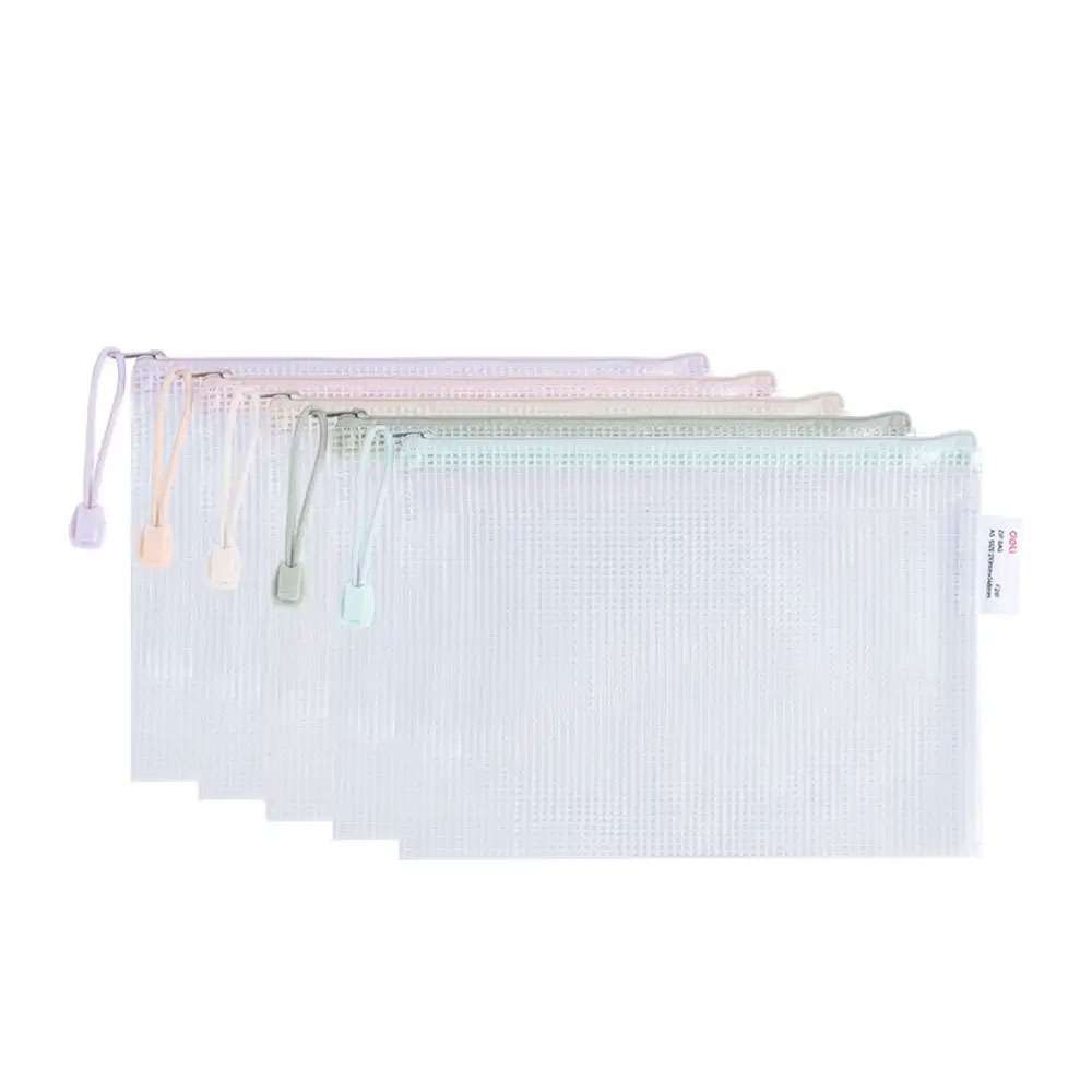 Deli Mesh Zip Bag, A5, Semi-Transparent, Lightweight, Document Organizer, Office & Personal Use - Assorted