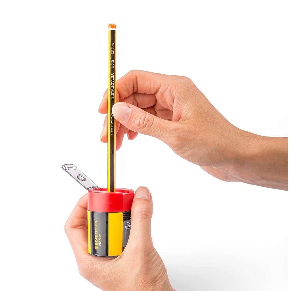The Staedtler Transparent Tub Sharpener, model ST-511-006, allows you to see when the shavings container is full, making it both practical and convenient. Designed for standard pencils, it offers smooth, consistent sharpening in a compact, portable design.