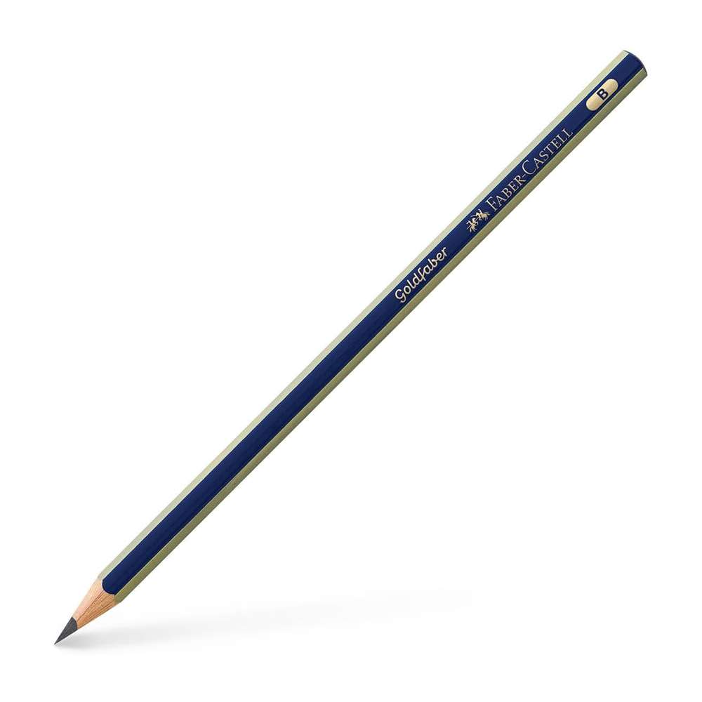Faber-Castell Goldfaber 1221 Graphite Pencil without Eraser Tip, B, Break-Resistant, Soft & Expensive Lines, Ideal for School Kids, Blue/Gold Barrel – Box of 12