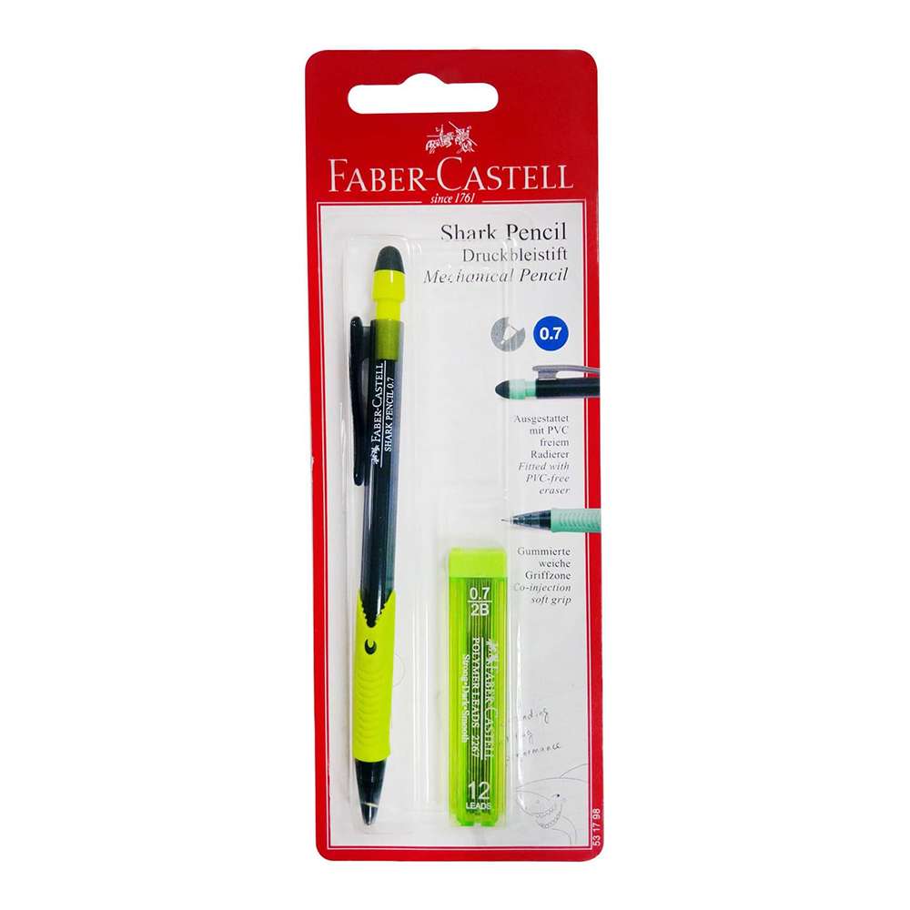 Faber-Castell Shark Mechanical Pencil with 12 Leads, 0.7 mm, Smooth Flow, Dark Strokes, Mess Free, Ideal for Technical Drawing, Assorted – Blister Pack of 1 + 1