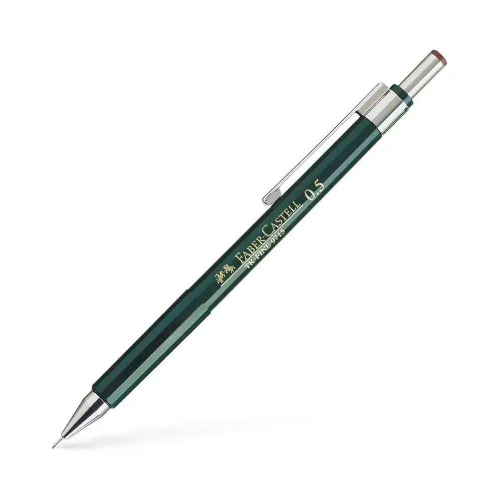 Faber-Castell TK-Fine 9715 Mechanical Pencil with Built-In Eraser, Drafting Tip, 0.5 mm, Retractable Sleeve, Fine Lines, Ideal for Technical Drawing & Writing - Green