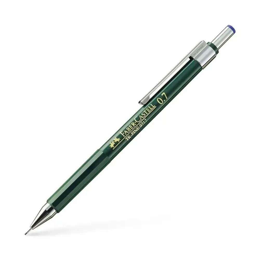 Faber-Castell TK-Fine 9717 Mechanical Pencil with Built-In Eraser, Drafting Tip, 0.7 mm, Retractable Sleeve, Bold Lines, Ideal for Technical Drawing & Writing - Green