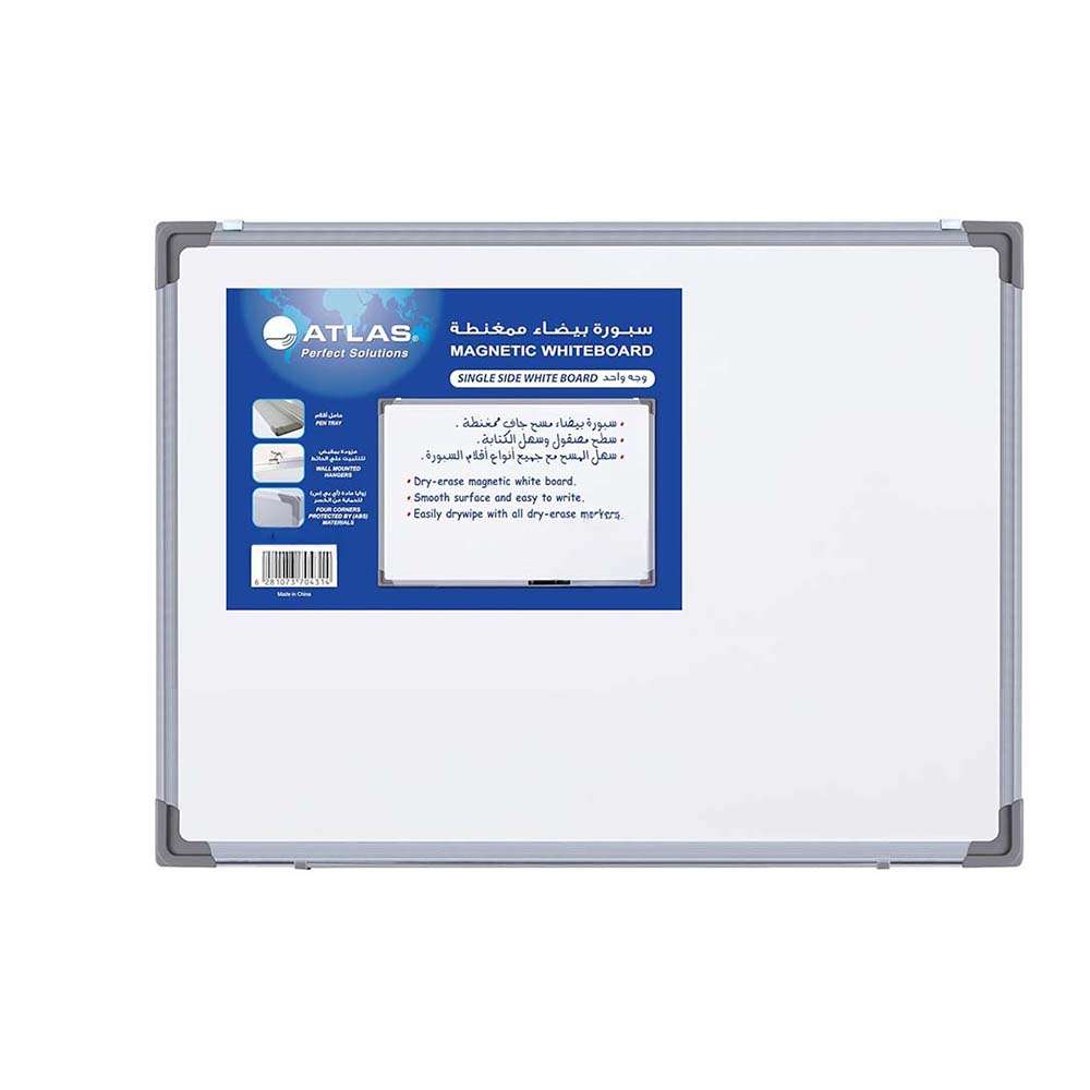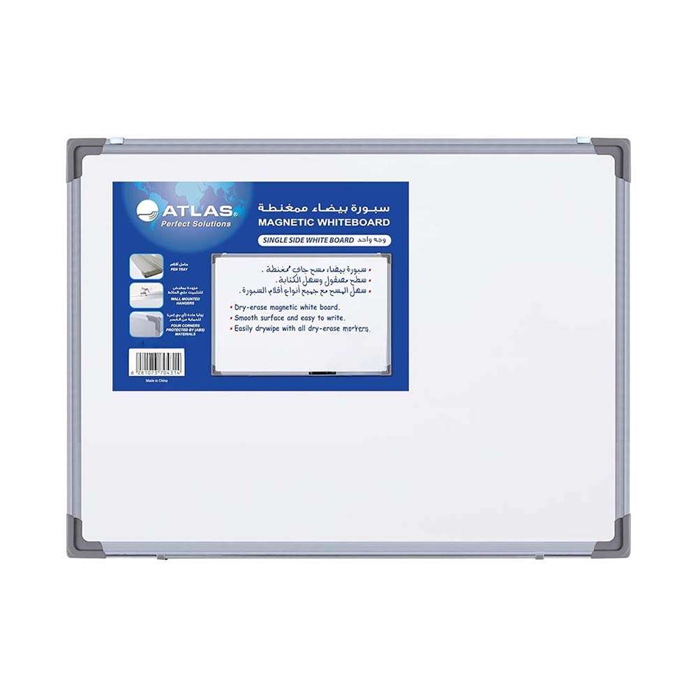 Atlas Whiteboard, Single-Sided, Aluminum Frame, Smooth Write & Erase, 90 × 120 cm, Wall Mounted, Ideal for School, Office & Home Use – 1 Board