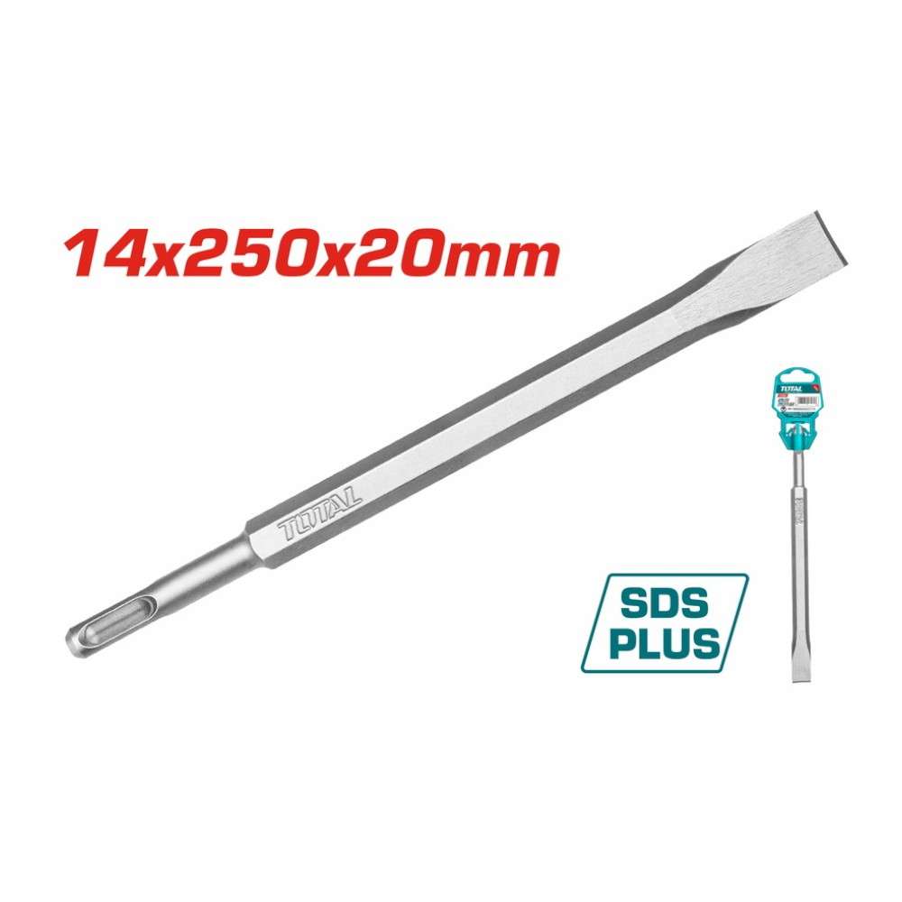 • Strong and durable SDS Plus chisel bit1. The Total TAC15121411 SDS Plus chisel bit is a heavy-duty and reliable tool for tackling demolition and chiseling tasks. At 14 inches in length and 250mm in width, it is the ideal size for precision work and can easily fit into tight spaces. This chisel bit is made from high-quality materials, ensuring strength and durability to withstand tough jobsite conditions. It is designed to be used with the TAC15121411 rotary hammer, providing optimal power and performance. Whether you're breaking through concrete or chipping away at brick, this chisel bit is up to the task.