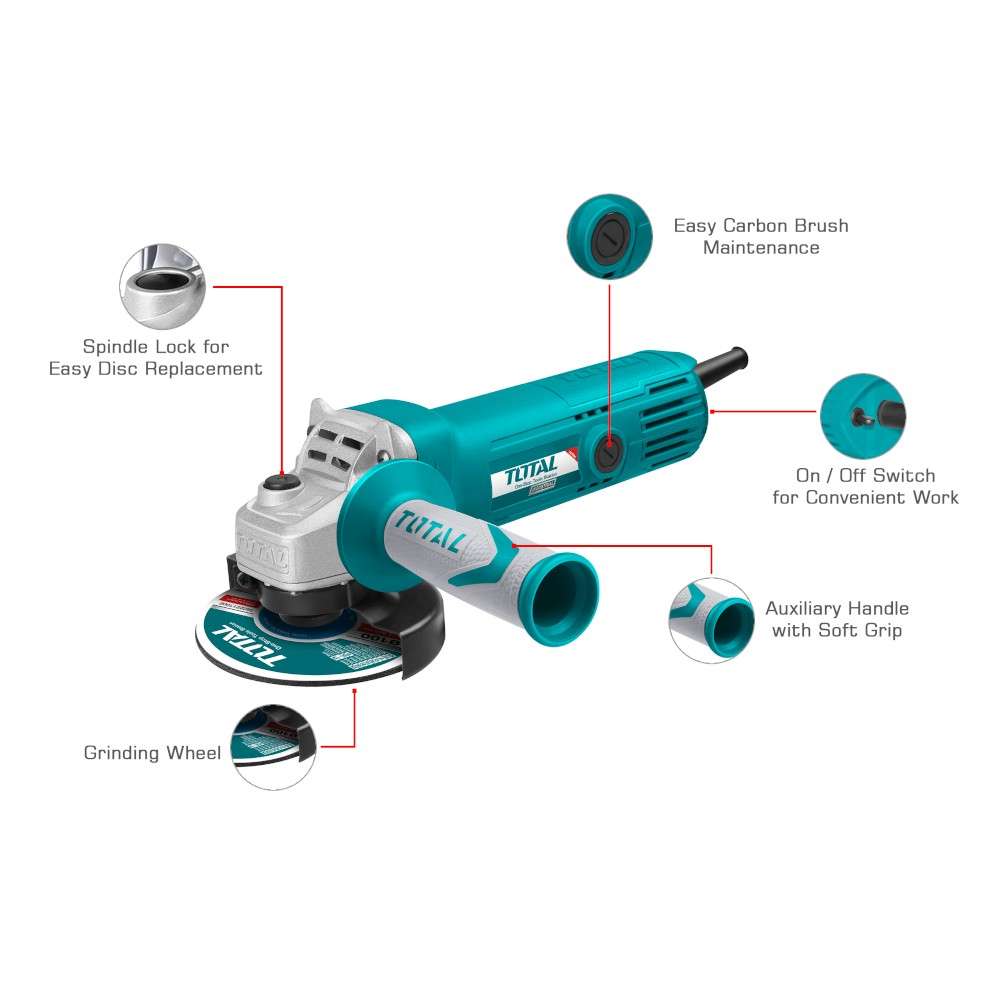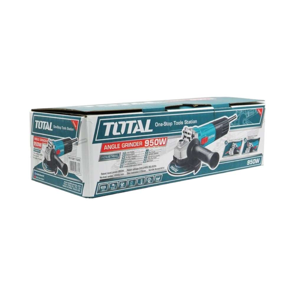 • Powerful 950W angle grinder for efficient cutting and grinding.1. The Total TG10911526 950W 115MM Angle Grinder is a highly efficient tool that delivers 950 watts of power for cutting and grinding tasks. Its compact and lightweight design makes it easy to handle and control, while its durable construction ensures long-lasting performance. This angle grinder is suitable for both professional use on job sites and for DIY projects at home. With an ergonomic grip and safety features, it's comfortable and safe to use for extended periods of time. Upgrade your toolkit with the Total 950W angle grinder and experience its versatility and reliability.