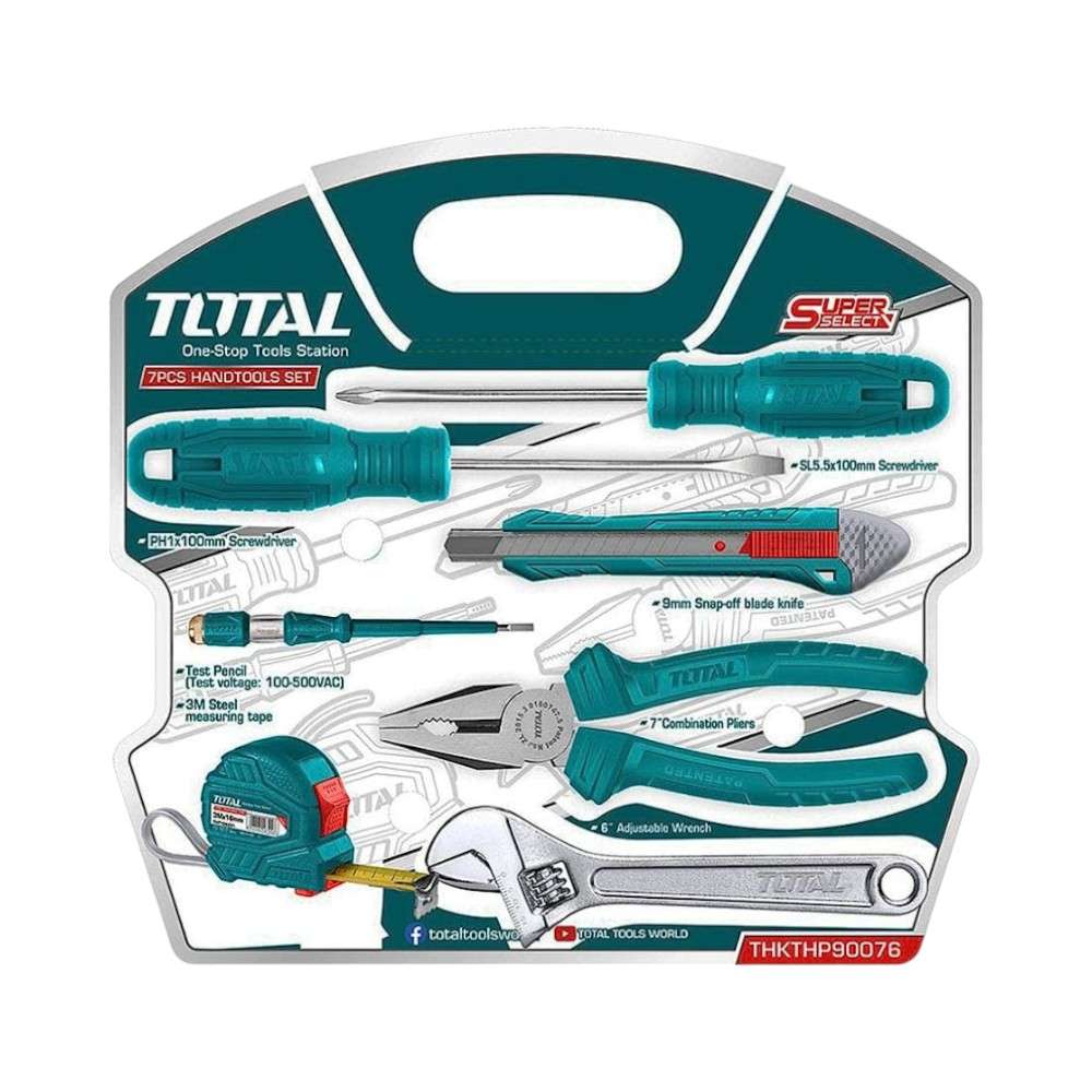 2. Looking for a set of tools that can handle a variety of tasks? Look no further than the Total THKTHP90076 Handtools Set. With 7 essential tools included, this set is perfect for everyday use around the house or for completing small repairs. Each tool is made with precision and durability in mind, ensuring that you can rely on them for years to come. The compact and versatile design of these tools makes them ideal for various tasks, from hammering and sawing to tightening and fixing. Don't wait any longer, get your hands on this all-in-one set and tackle any task with ease.