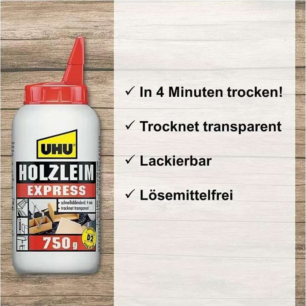 UHU provides workshop-size D2 PVA for indoor joinery and assembly lines. The focus is on quick set, clear finish, and strong adhesion, helping users bond panels, frames, and trims with confidence. Model UH48600 sands cleanly for top-coating.