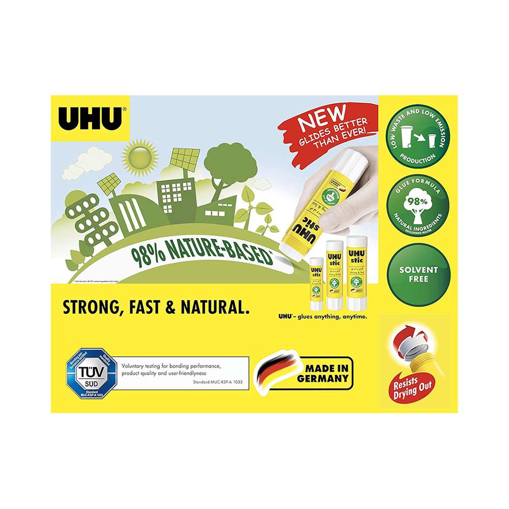 UHU provides reliable glue sticks for documents and crafts. The focus is on strong initial grab, smooth application, and clear drying, helping users assemble projects neatly. Model UH65 contains 21 g with a twist applicator and protective screw cap.