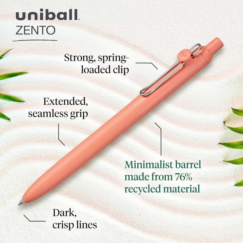 Uni-ball Zento Adobe pairs 0.7 mm blue output with an adobe-tone barrel. Model MI-UBNZSC-07-AE-BE focuses on smoothness, consistency, and relaxed control for daily lists, forms, and tidy notes.